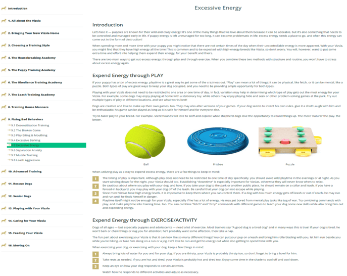 This 18-page guide gives you step-by-step instructions to help you solve behavioral issues in adult Vizslas.